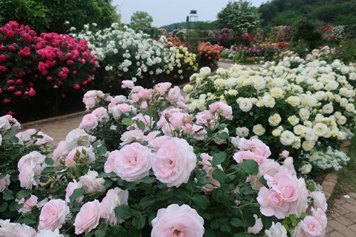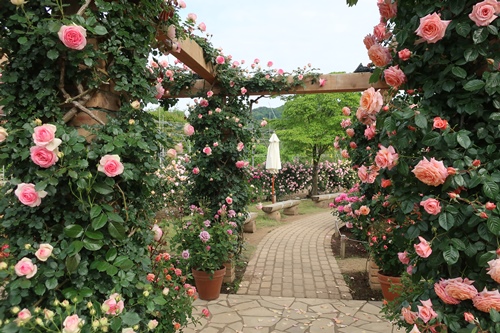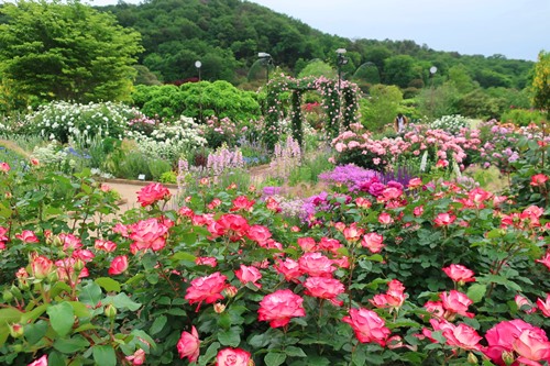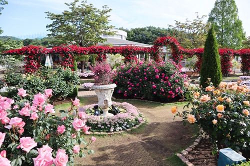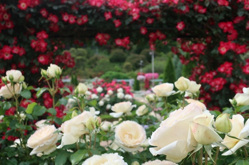 500品種、2,500株のバラが華やかに園内を彩ります。