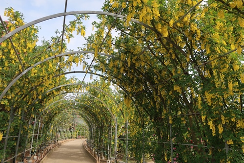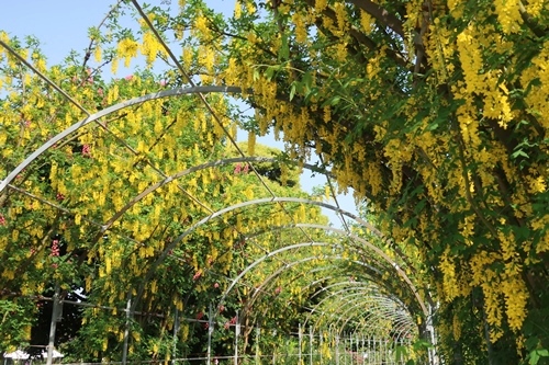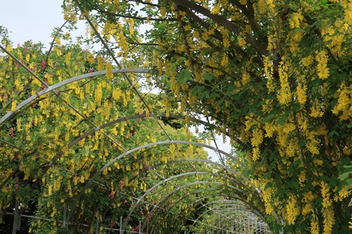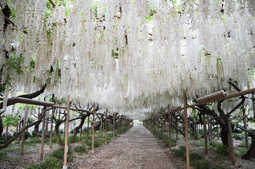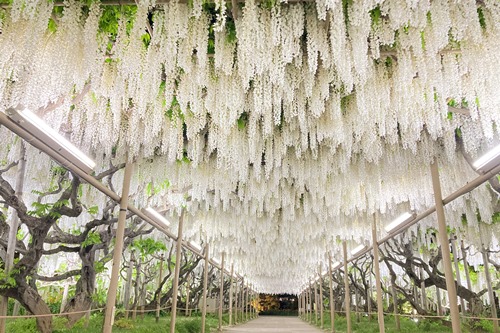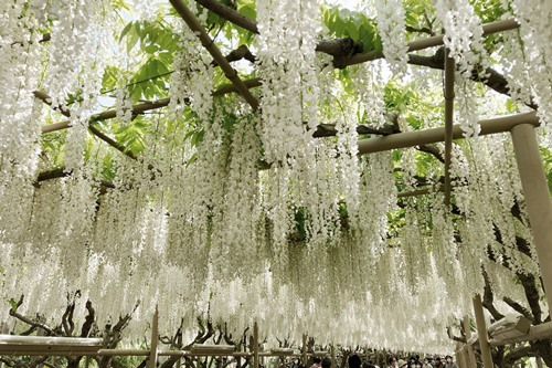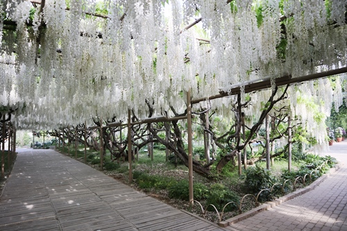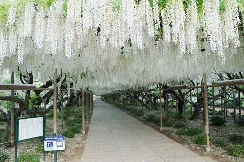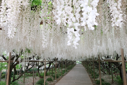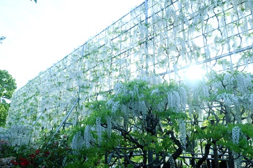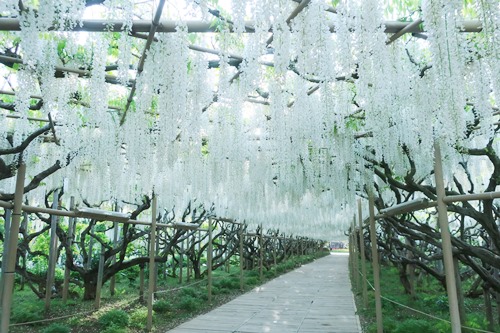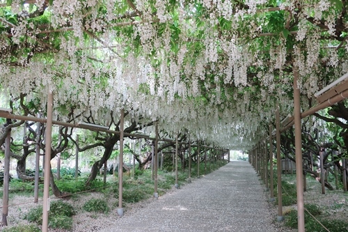 白藤トンネルが満開!!3色の藤色がお楽しみ頂けます。