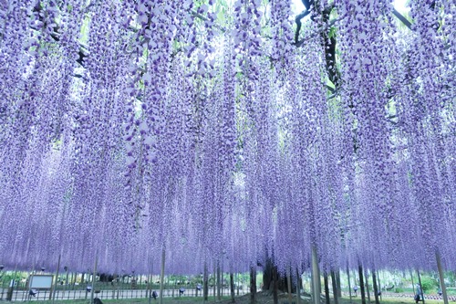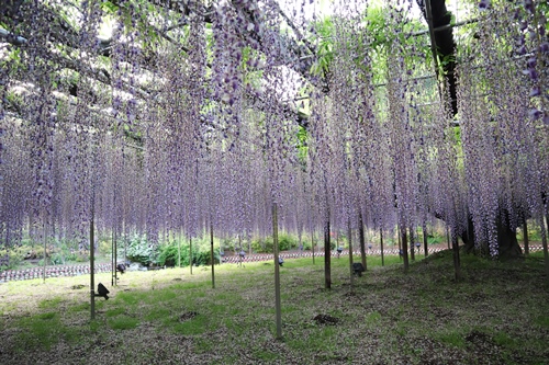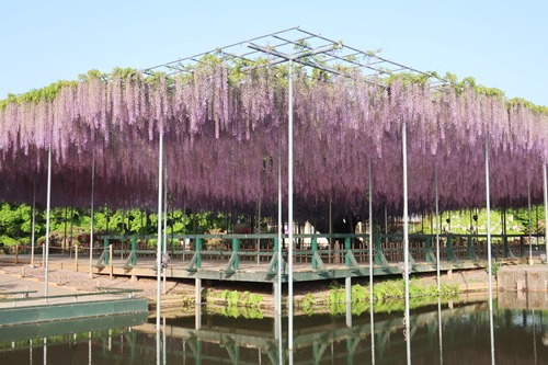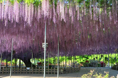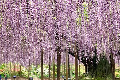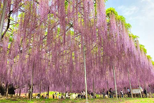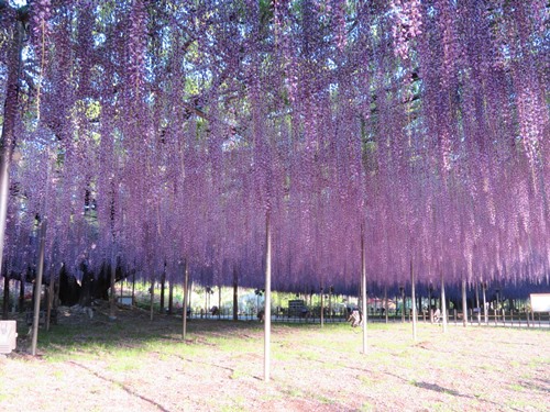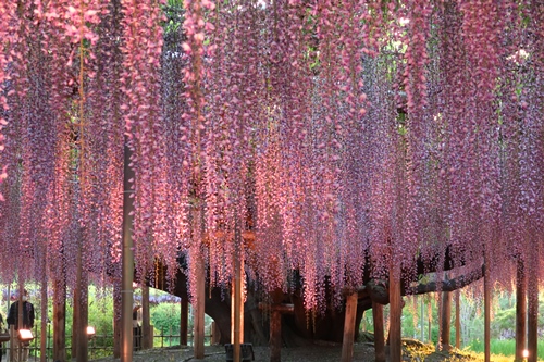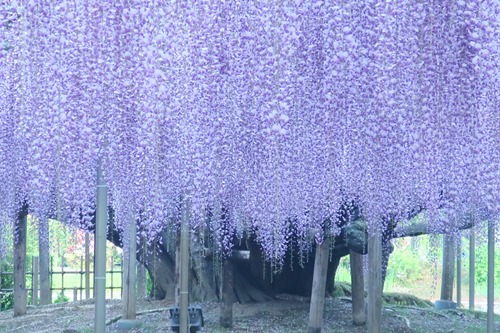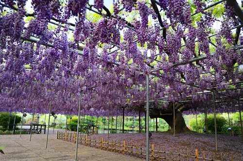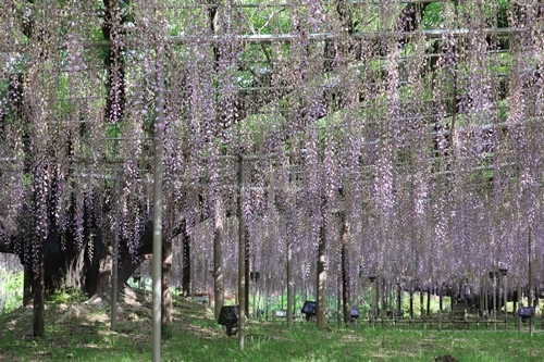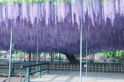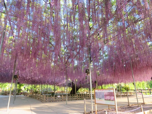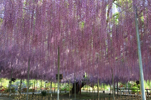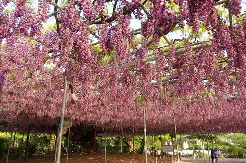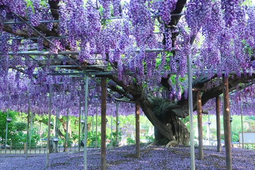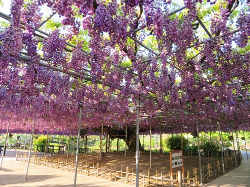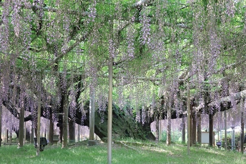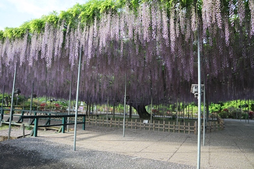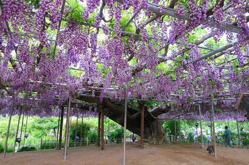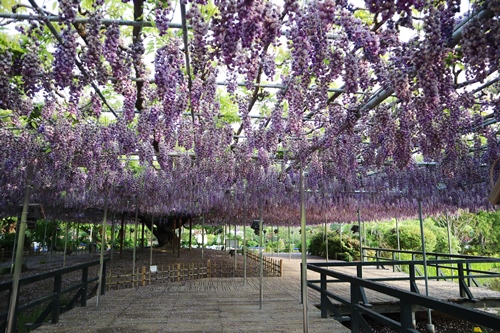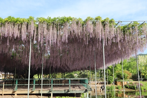 樹齢は160年におよび、1本の幹で1,000㎡の大藤棚です。