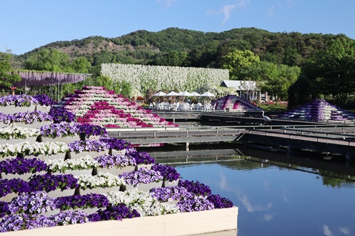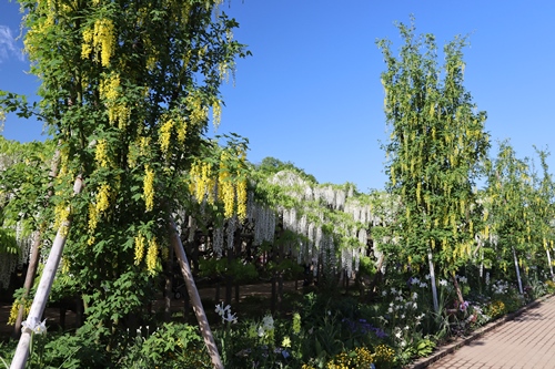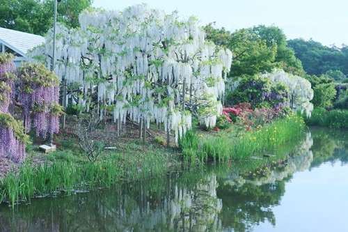 大藤・白藤・きばな藤の3色の藤色が同時にご覧頂ける園内となっています。