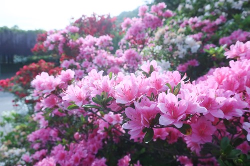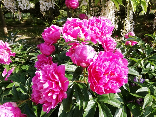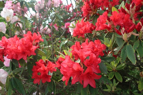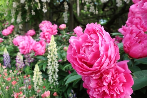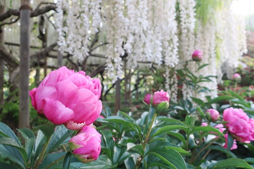 バラ、シャクナゲ、シャクヤクなどが華やかです。