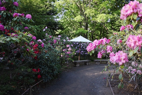 シャクナゲ、シャクヤク、クレマチスと共に華やかな園内となっています。