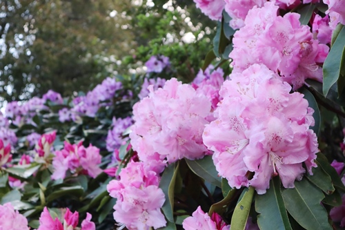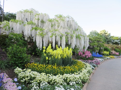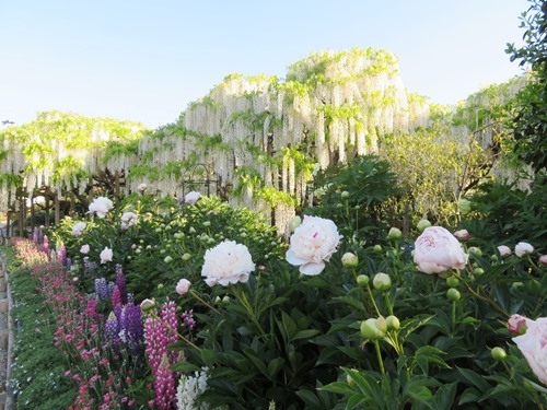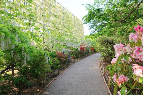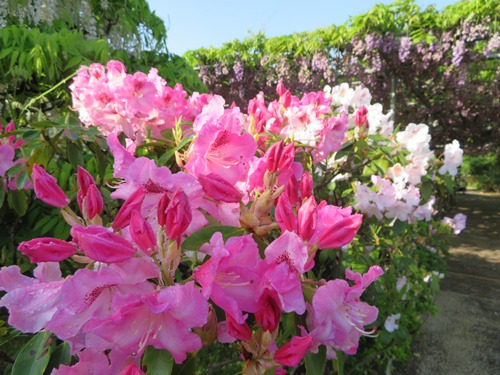 きばな藤・バラ・シャクナゲが華やかな園内です