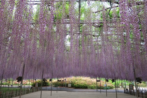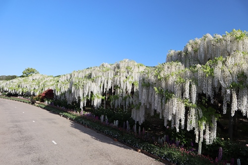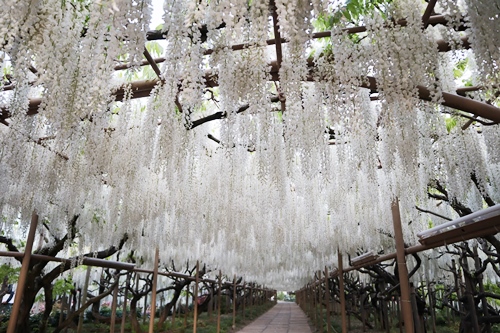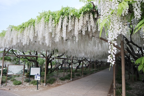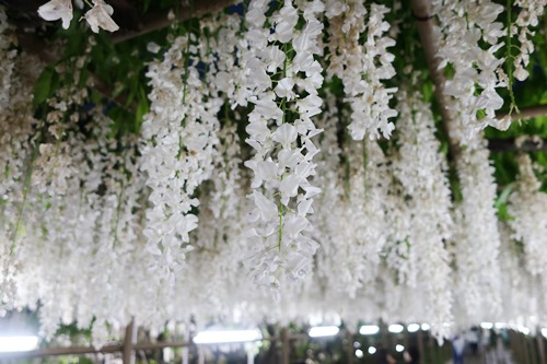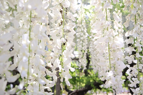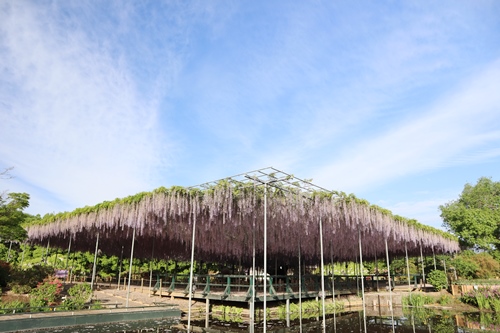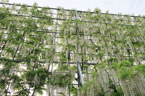 白藤トンネルの満開が続いています!!3色の藤色がお楽しみ頂けます。