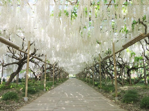 白藤のトンネルが満開です。きばな藤も見頃を迎えました。