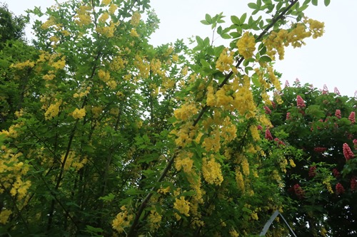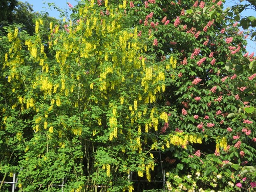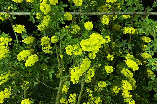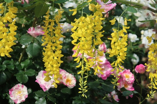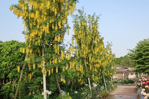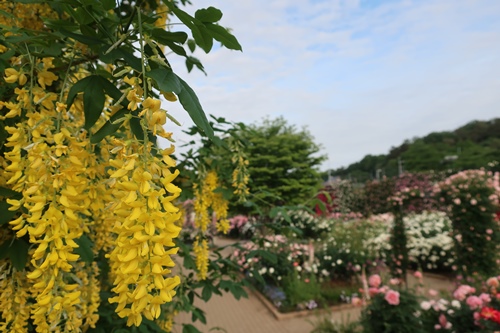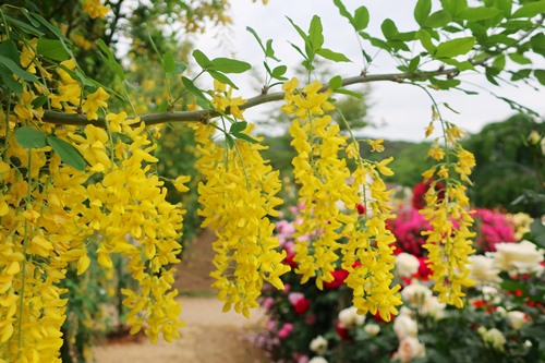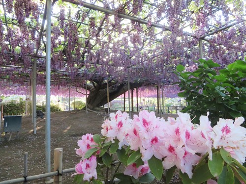 鮮やかな「きばな藤・バラ・シャクナゲ」の競演