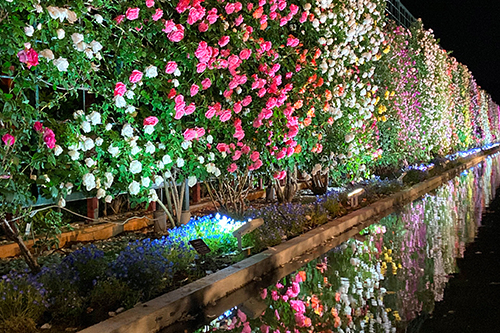 バラも見頃を迎え、ライトアップがお楽しみ頂けます。