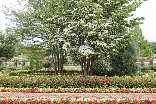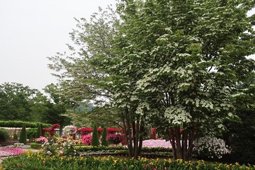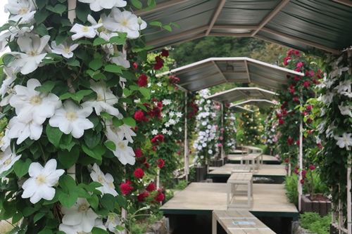 バラ、シャクナゲ、シャクヤク、クレマチスと共に華やか園内となっています。