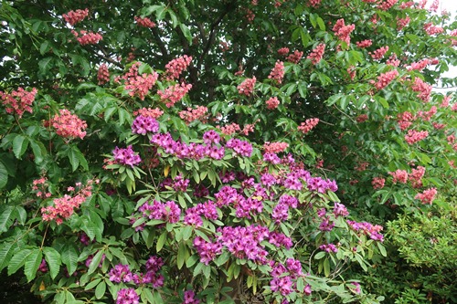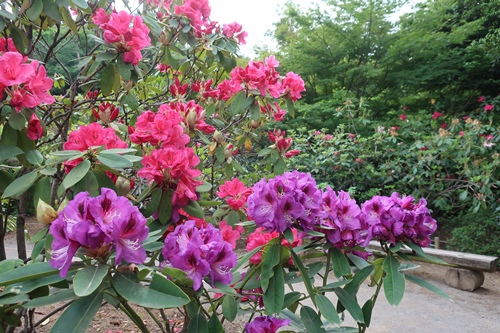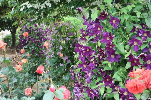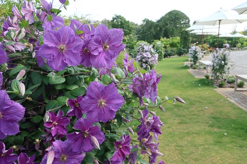 シャクナゲ、クレマチスと共に華やかな園内となっています。