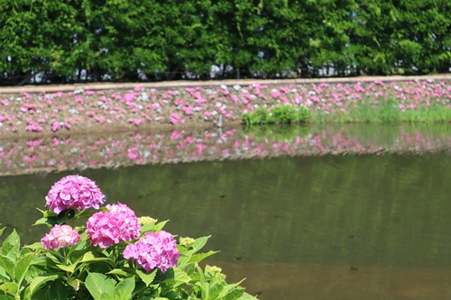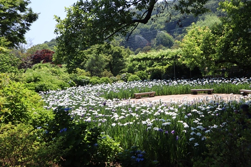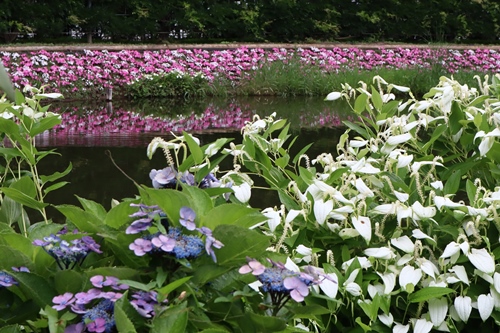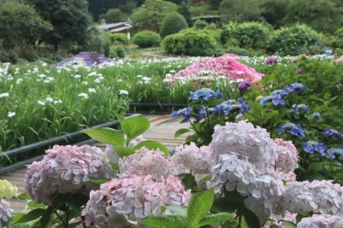 20万本の花菖蒲と1,500株のあじさいが見頃です。
