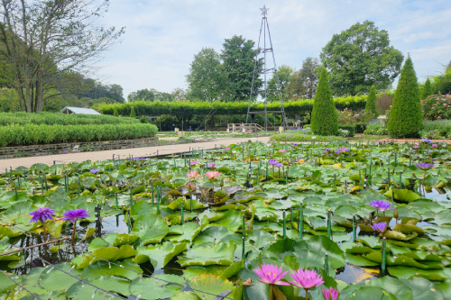 スイレンをはじめ、サルスベリやクレマチスなどがご覧いただけます。