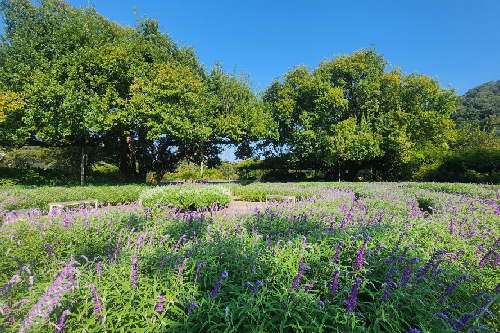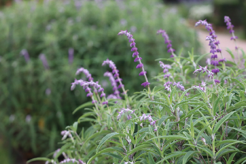 10月上旬頃よりアメジストセージと秋バラが見頃を迎えます。