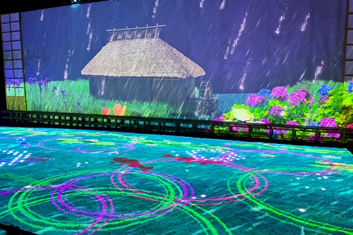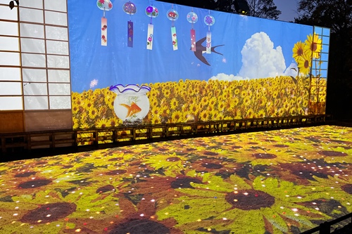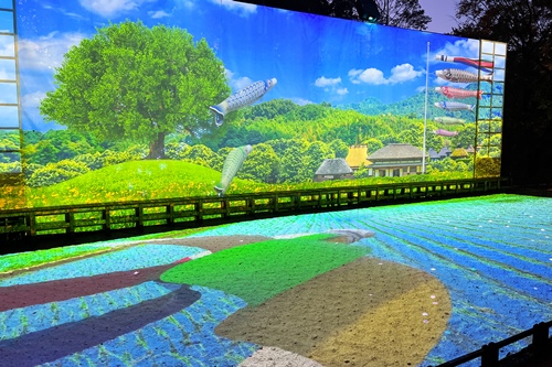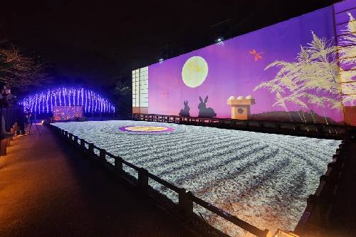 光の壁画だけではなく、石庭にも映えるプロジェクションマッピングとイルミネーションが融合し、心安らぐ日本の四季が訪れます。