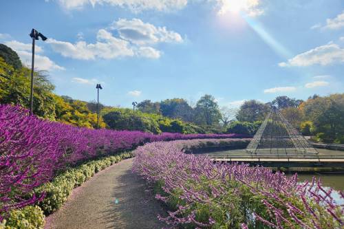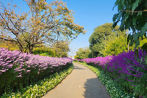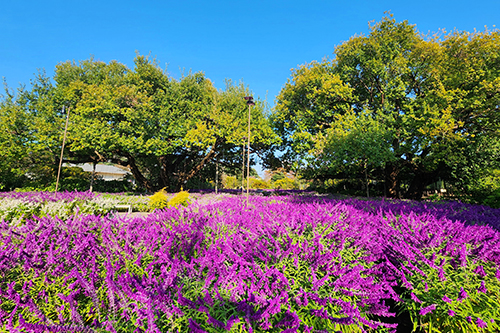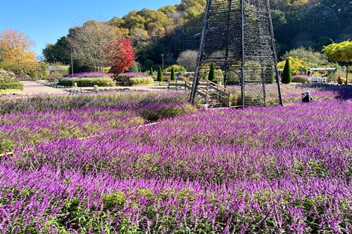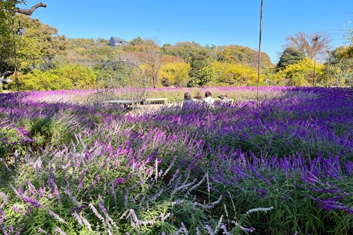 あしかがフラワーパークの園内ではアメジストセージが見頃です。