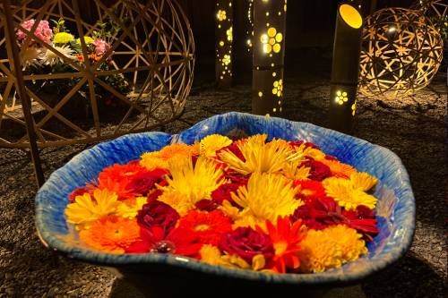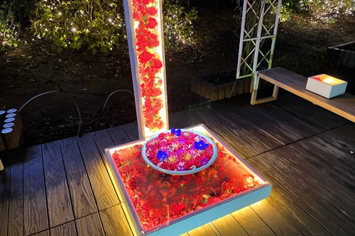 夜間は「光の花手水」としてお楽しみ頂けます。