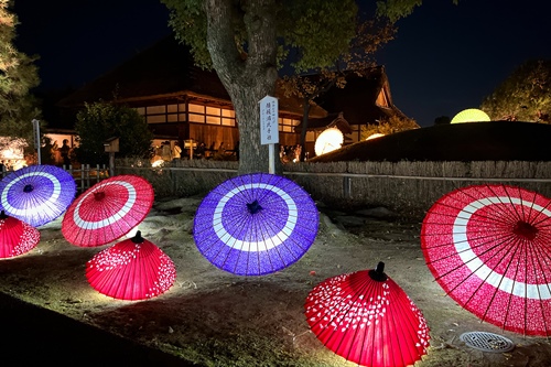 史跡足利学校にて当園監修「和傘」「花手水」「竹灯り」の展示がお楽しみ頂けます。