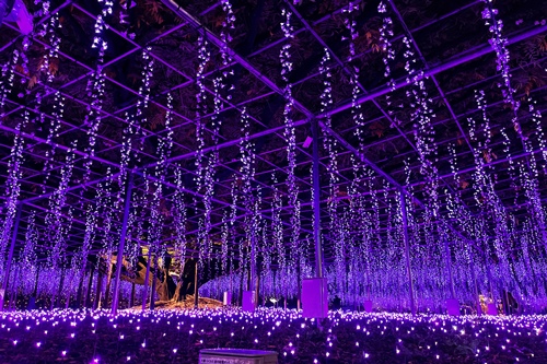 藤の生命力をグランドイルミネーションの変化と音楽と共にご覧ください。