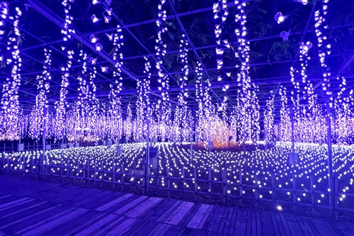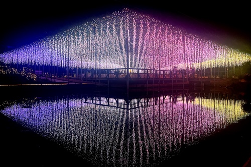 藤の生命力をグランドイルミネーションの変化と音楽と共にご覧ください。
