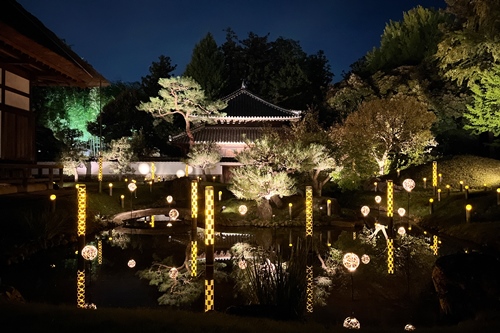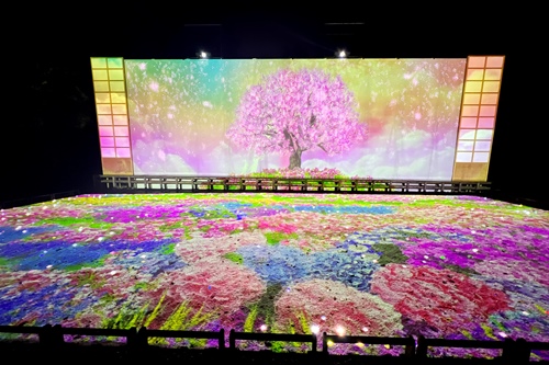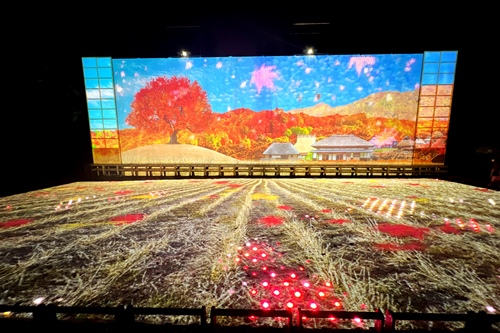 光の壁画だけではなく、石庭にも映えるプロジェクションマッピングとイルミネーションが融合し、心安らぐ日本の四季が訪れます。