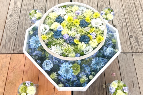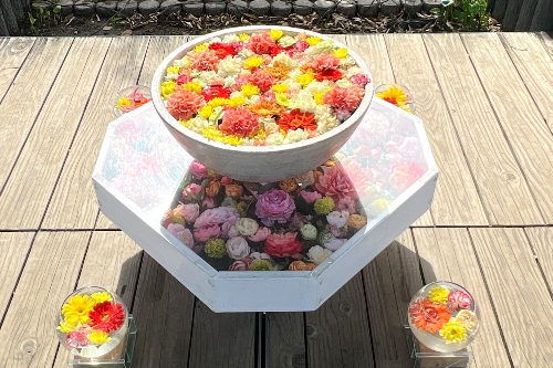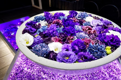 夜の部は「光の花手水」としてお楽しみいただけます。