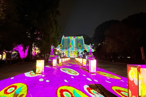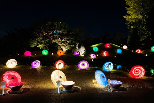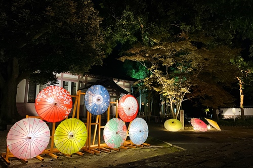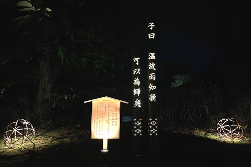 今年は「和傘の立体展示」や「孔子の論語」を灯りで演出を施しました。