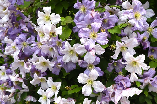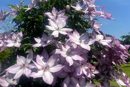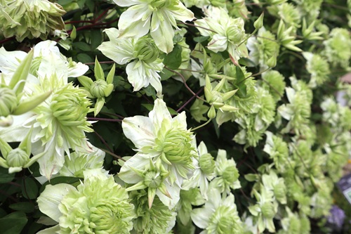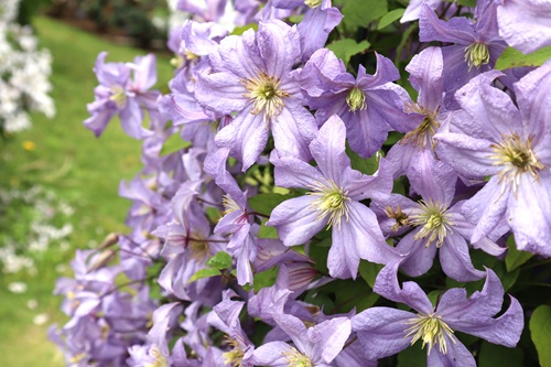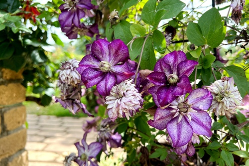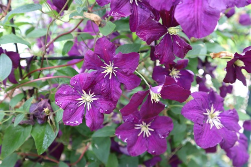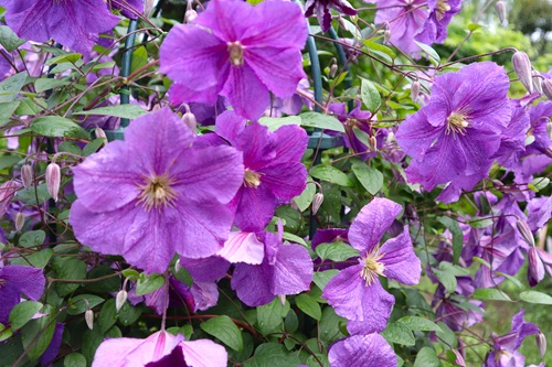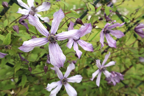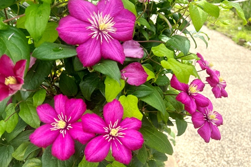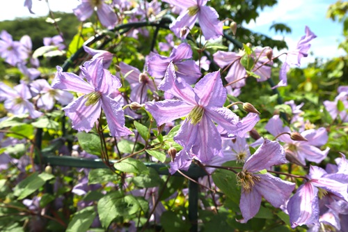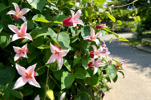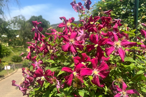 多種多様なクレマチスが園内に彩りを添えます。