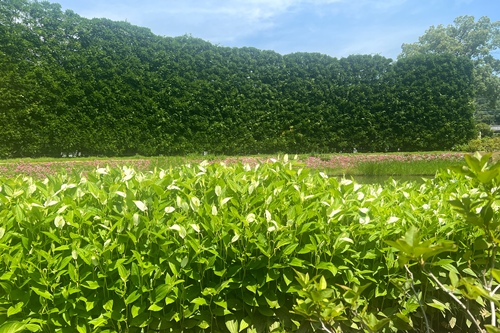 むらさき藤のスクリーン前にて、ハンゲショウがご覧いただけます。