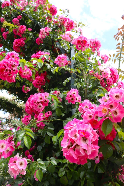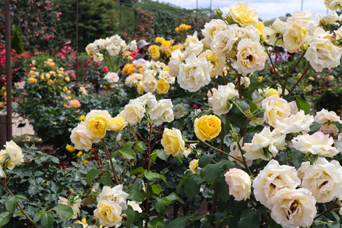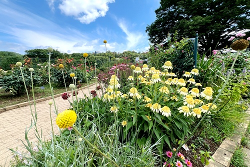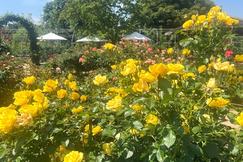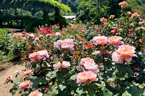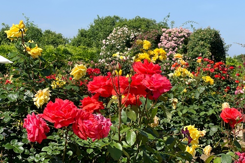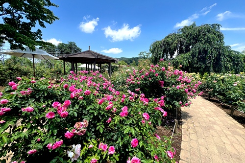 遅咲きのバラを中心に見頃が続いており、クレマチスとともにカラフルな園内をお楽しみいただけます。