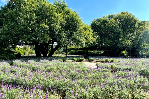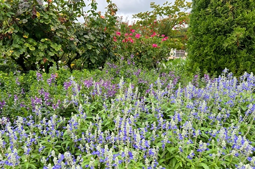 10月上旬頃よりアメジストセージと秋バラが見頃を迎えます。