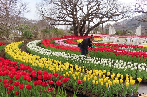 フラワーステージでは今日チューリップの搬入をしています。