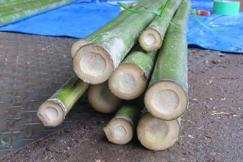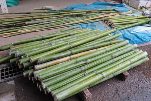 長尺の竹を必要な寸法にカットしていますね~