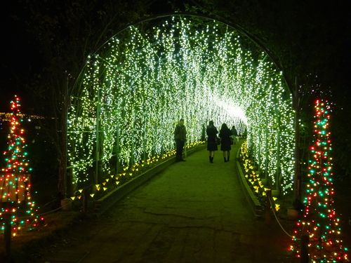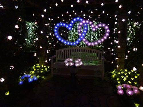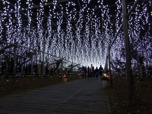 こちらは白藤のトンネルです。今年からこちらの電球にも藤の花のキャップがつき、実際に咲いてるかのようになりました。藤の花の匂いがしてきたら見間違えてしまうかもしれません。