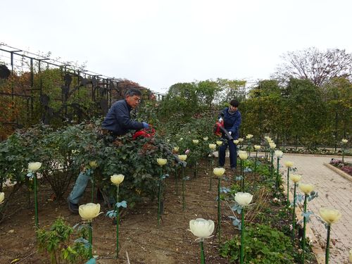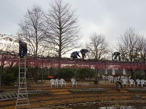 樹木班は藤の冬剪定中…春の姿を思い浮かべながらもくもくと