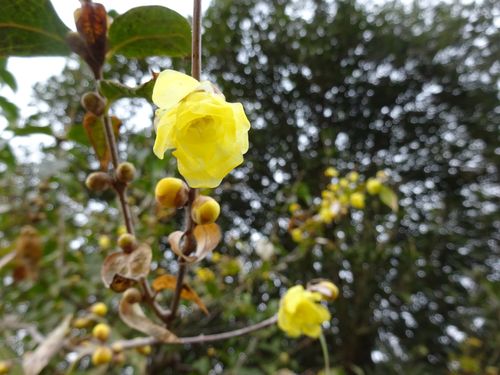 日当たりの良い場所ではロウバイが咲き始めてきました。まだ数えるほどですが、あと半月もすれば黄色の花を枝いっぱいに咲かせてくれます♪