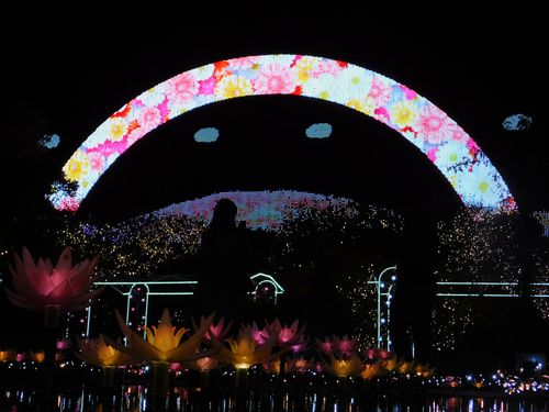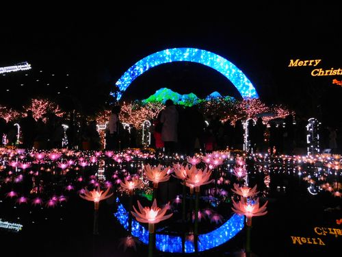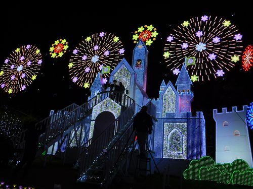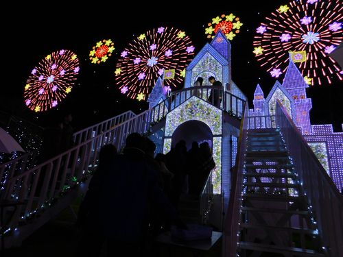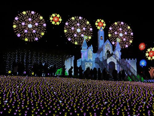 クリスマスソングに合わせて花火が上がったり、花畑が輝いたり・・・