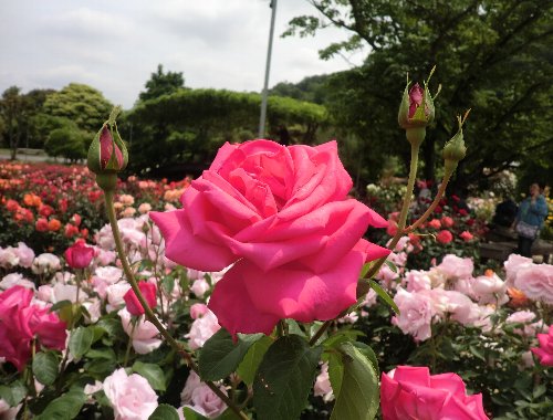 只今、園内ではバラとクレマチス、遅咲きのシャクナゲ、ペチュニア達が見頃です。