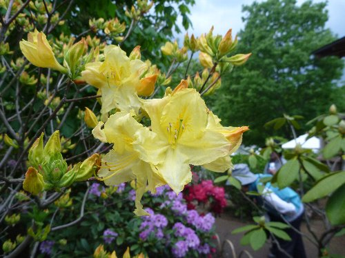 園内奥のシャクナゲの森では、黄色が鮮やかなエクスバリーアザレアや、シャクナゲ、ハクウンボクなど様々な花を楽しむことができます。