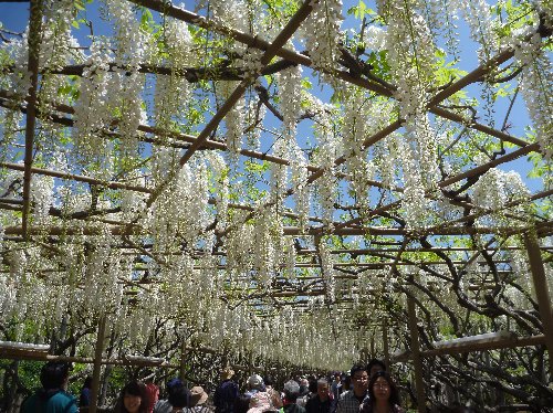長さ80mにおよぶ白藤トンネルも見頃を迎え始めました!これからさらに綺麗な姿になっていくでしょう!