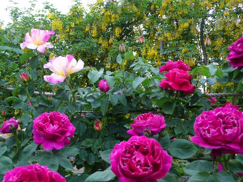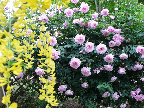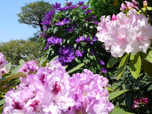 今は名残のきばな藤とバラ・シャクナゲ・クレマチスがお楽しみいただけます♪