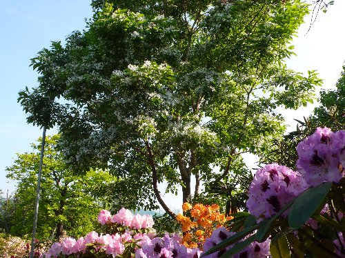 そして、今年はシャクナゲの森中央にあるハンカチノキがたくさんの花を咲かせています。