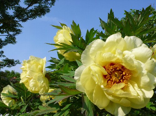 ちょっと珍しい黄色いボタン!赤やピンクよりは少し遅咲きで今見頃を迎えています(^^)