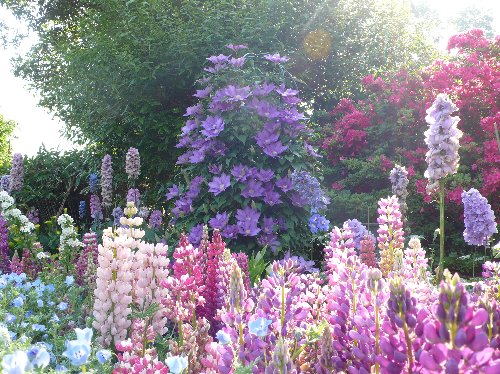 クレマチスの紫にルピナスのピンク、ネモフィラの水色…女子が好きそうなメルヘンな感じになってきました♪
