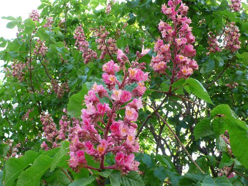 園内に10本以上あるベニバナトチノキ!木によって若干花色の濃さに違いがあるんですが…わかりますか?♪