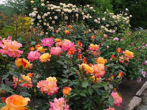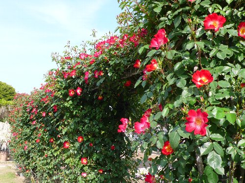 香りの庭の奥の方、7色のバラが織りなす虹色の壁はレインボーガーデンの象徴のようでもあります(^0^)