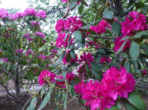 半日陰を好むシャクナゲ、大木も落葉高木に守られ元気に咲いてくれています♪