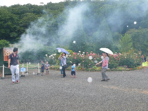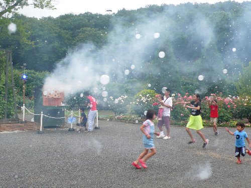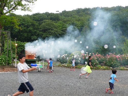 煙を閉じ込めたシャボン玉で、割れるともくもく煙が出ます。老若男女の心をときめかせてくれてます♪