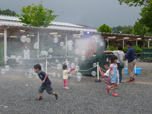 シャボン玉マシンから大きいのや小さいの、たっくさ~んのシャボン玉が次から次へと出てきます!