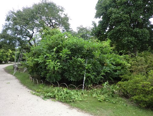 アメジストセージの誘引と藤の夏剪定(2回目)です。