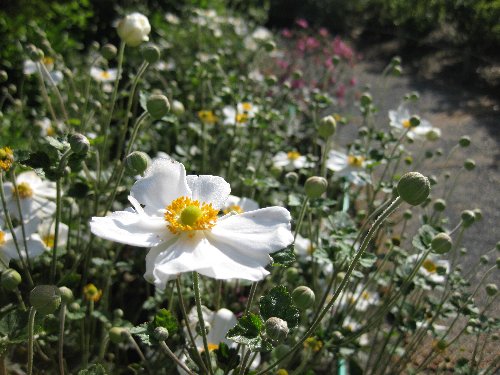 シュウメイギク(秋明菊)といいますが、キク科ではなくキンポウゲ科でアネモネに近い植物です!言われてみると花の雰囲気が似てると思いませんか?