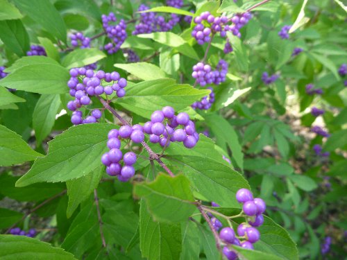 柔らかく枝垂れた枝に、ブドウの様な実をたくさんつけている様は秋の園内によく映えますね。